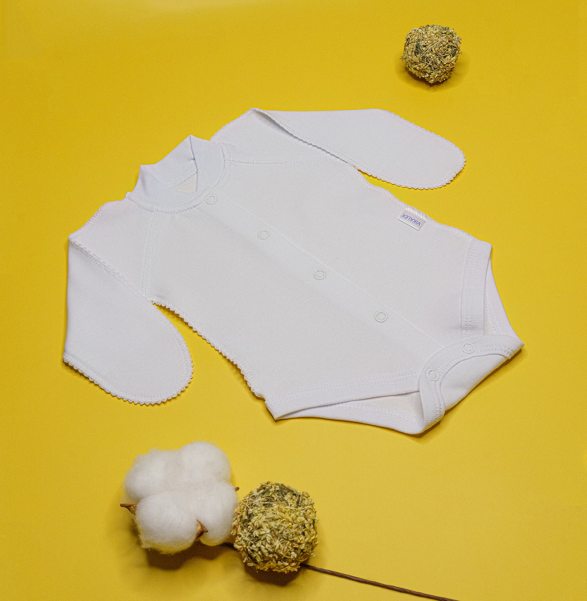 Удобное боди легко надеть на ребёнка благодаря застёжке по всей длине. Модель со швами наружу, которые не будут доставлять малышу неудобств. Проймы для ног отделаны кантом. Изделие из натуральной дышащей ткани.