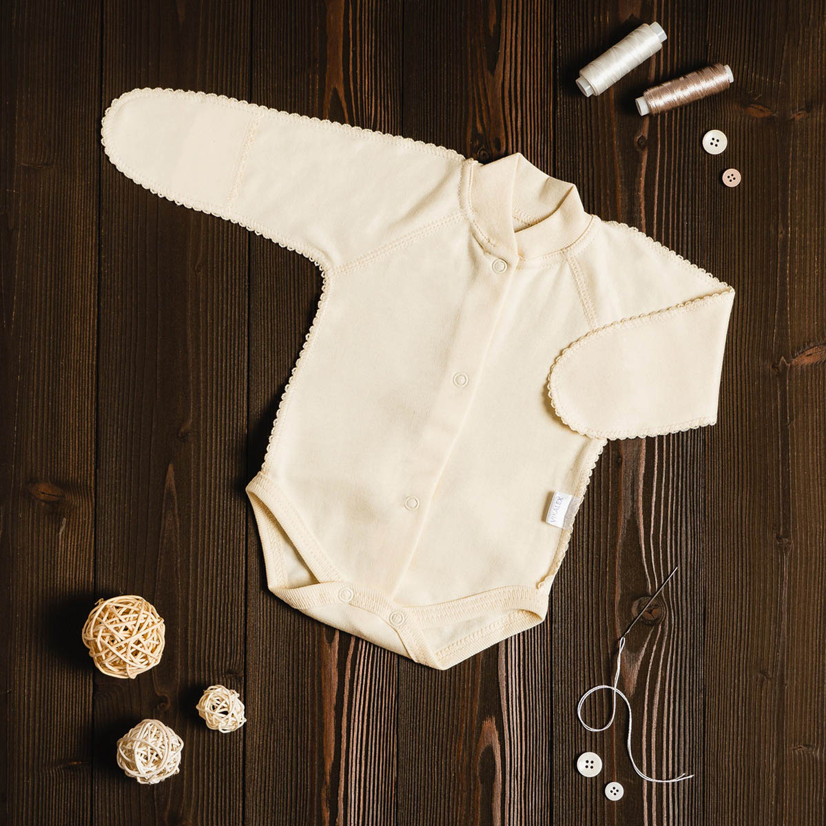 Удобное боди легко надеть на ребёнка благодаря застёжке по всей длине. Модель со швами наружу, которые не будут доставлять малышу неудобств. Проймы для ног отделаны кантом. Изделие из натуральной дышащей ткани.
