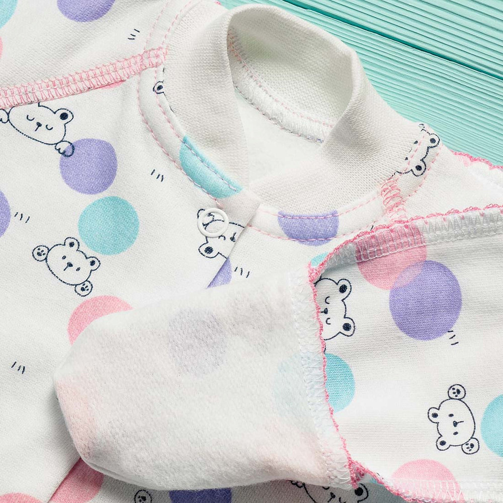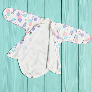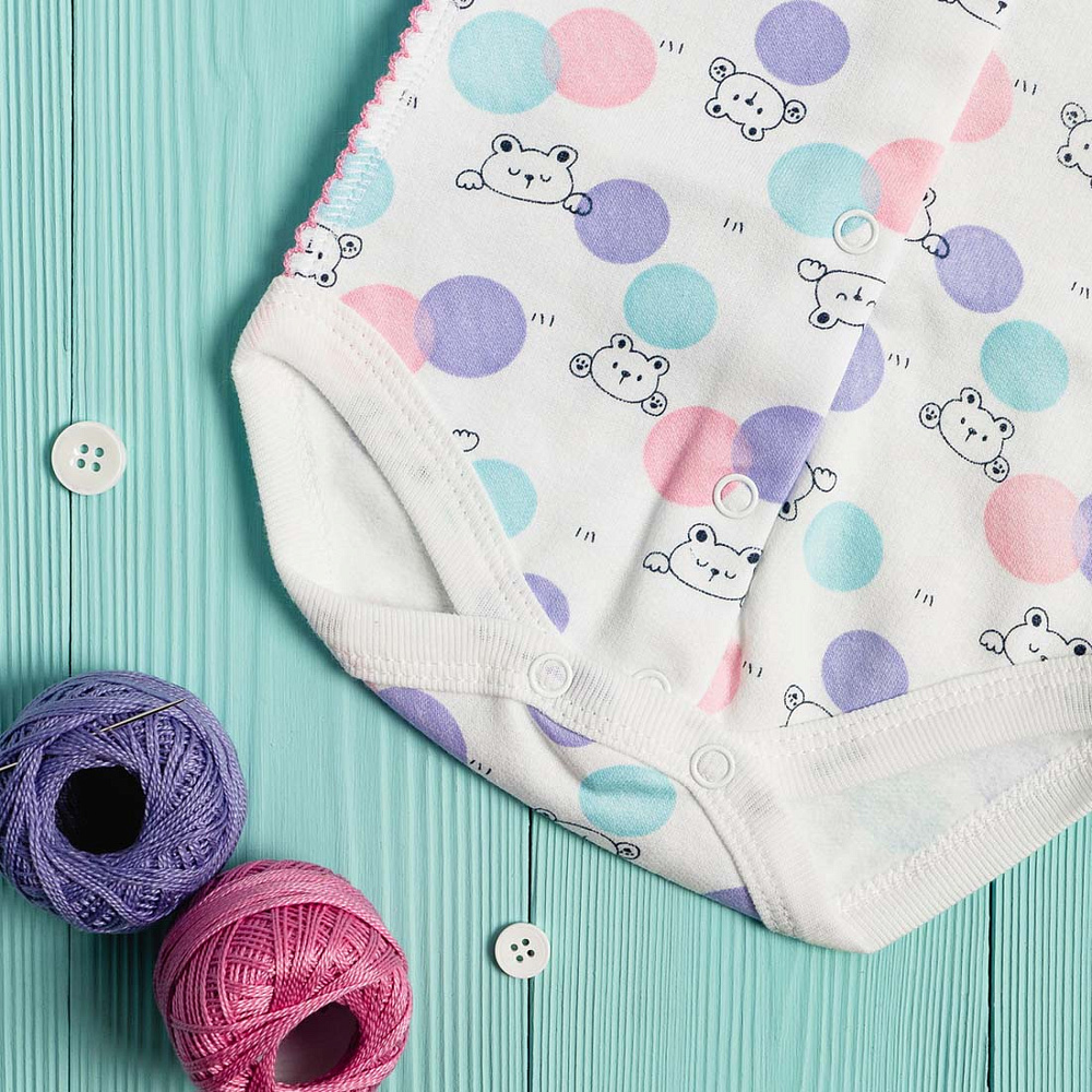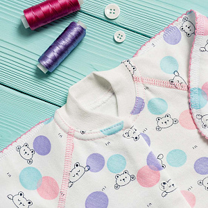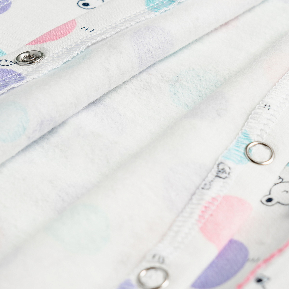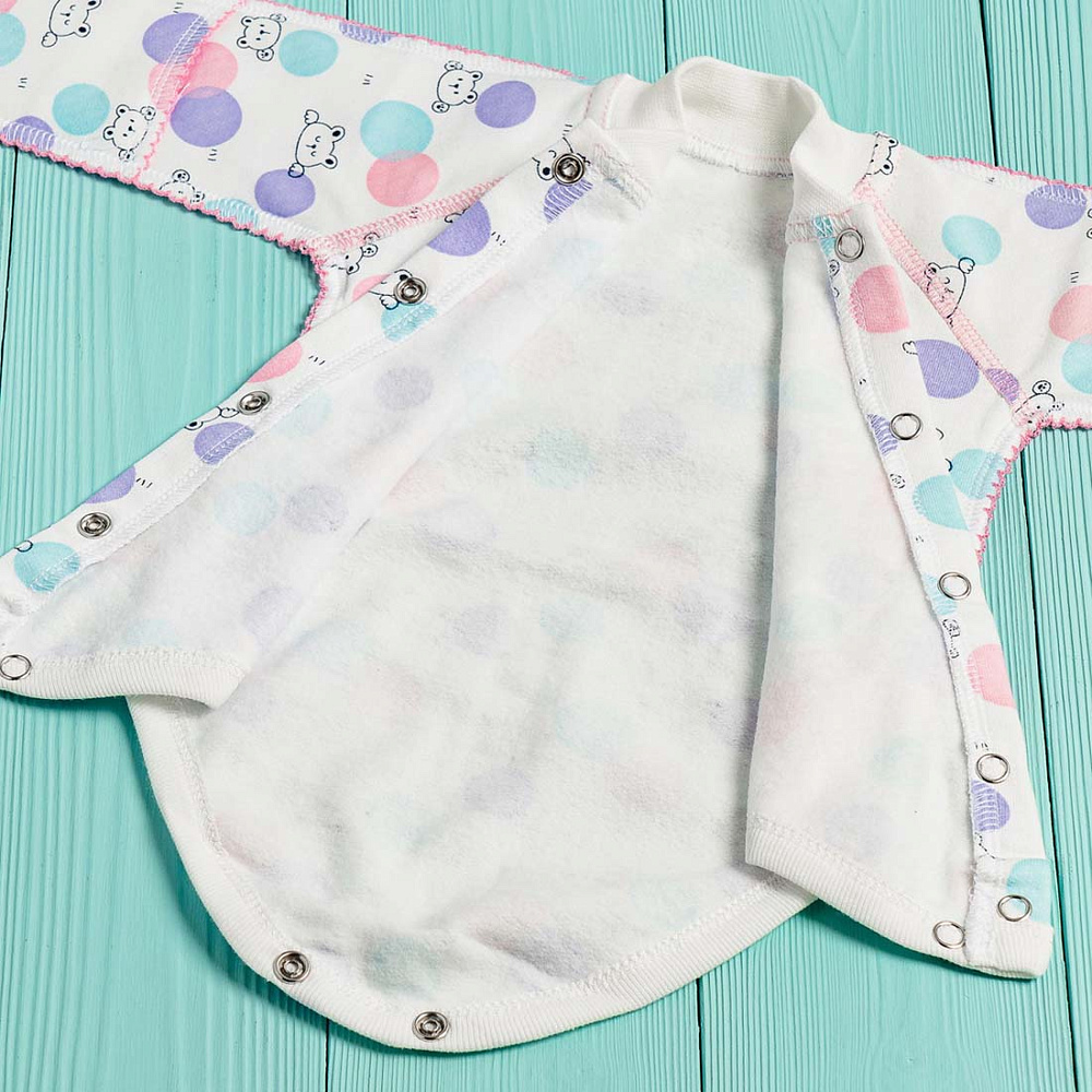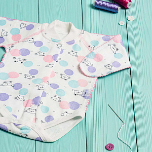 Боди выполнено из хлопкового футера с мягким начесом внутри. Застежка на кнопочки спереди по всей длине и между ножек позволит легко одеть малыша, а также сменить ему памперс, не снимая боди полностью. Рукава имеют манжеты-трансформеры для возможности закрыть ручку малыша от царапания. Чтобы не травмировать нежную кожу ребенка, все швы выполнены наружу на четырехниточном оверлоке качественными нитками в тон полотна. Боди также оформлен фирменным флажком с надписью Vikalex - это не только элемент декора, но и знак качества изделия.