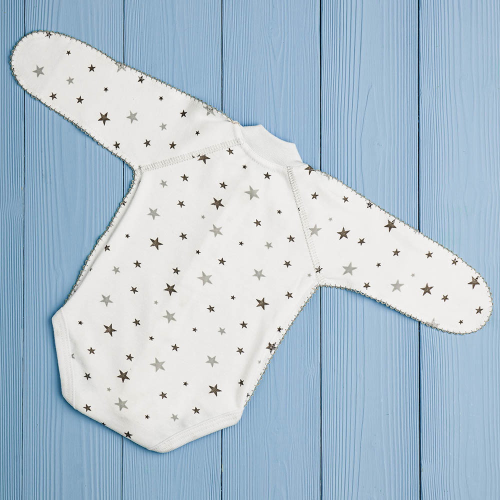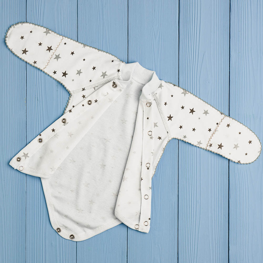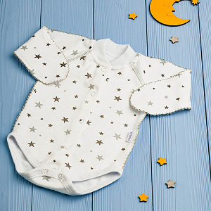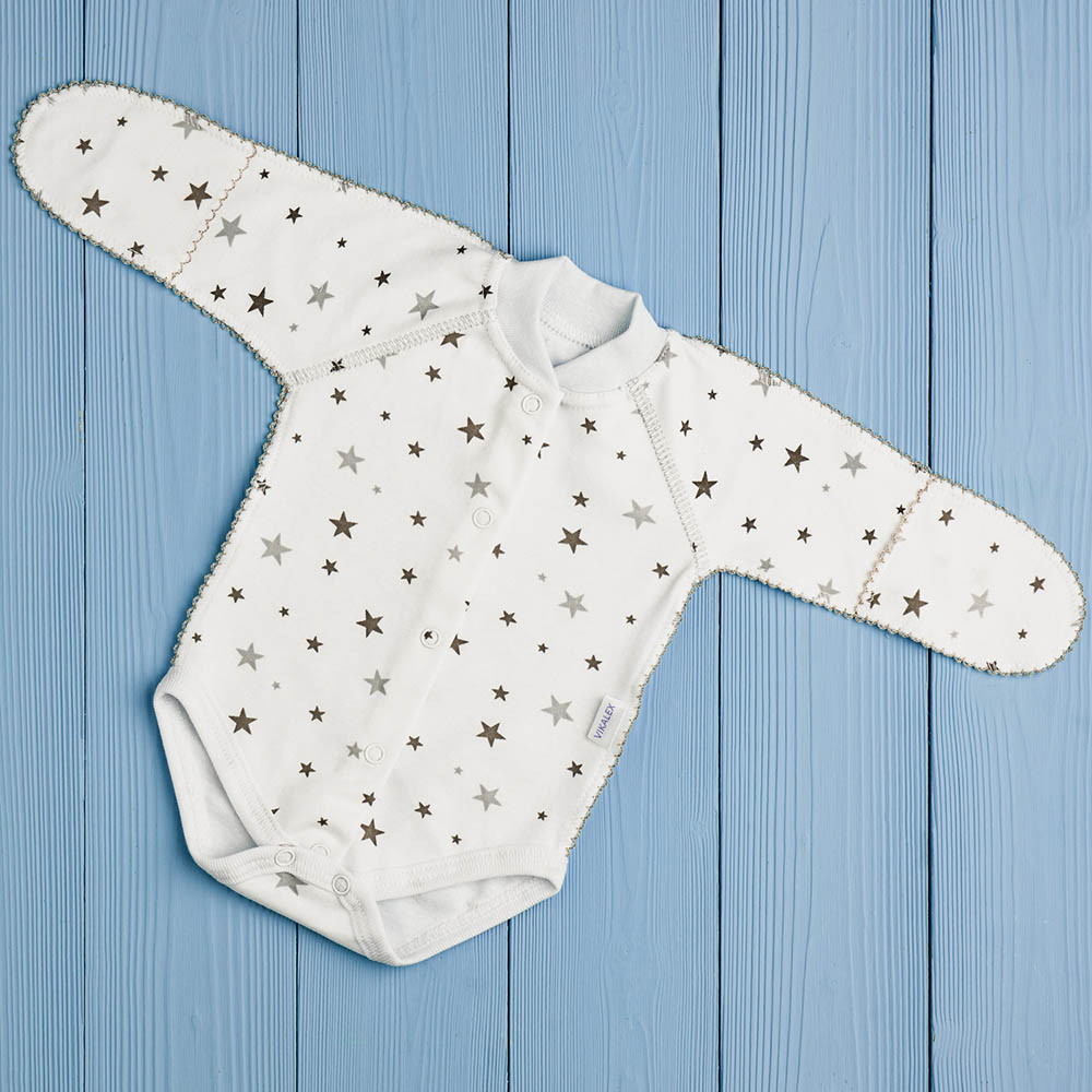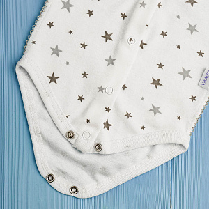 Удобное боди легко надеть на ребёнка благодаря застёжке по всей длине. Модель со швами наружу, которые не будут доставлять малышу неудобств. Проймы для ног отделаны кантом. Изделие из натуральной дышащей ткани.