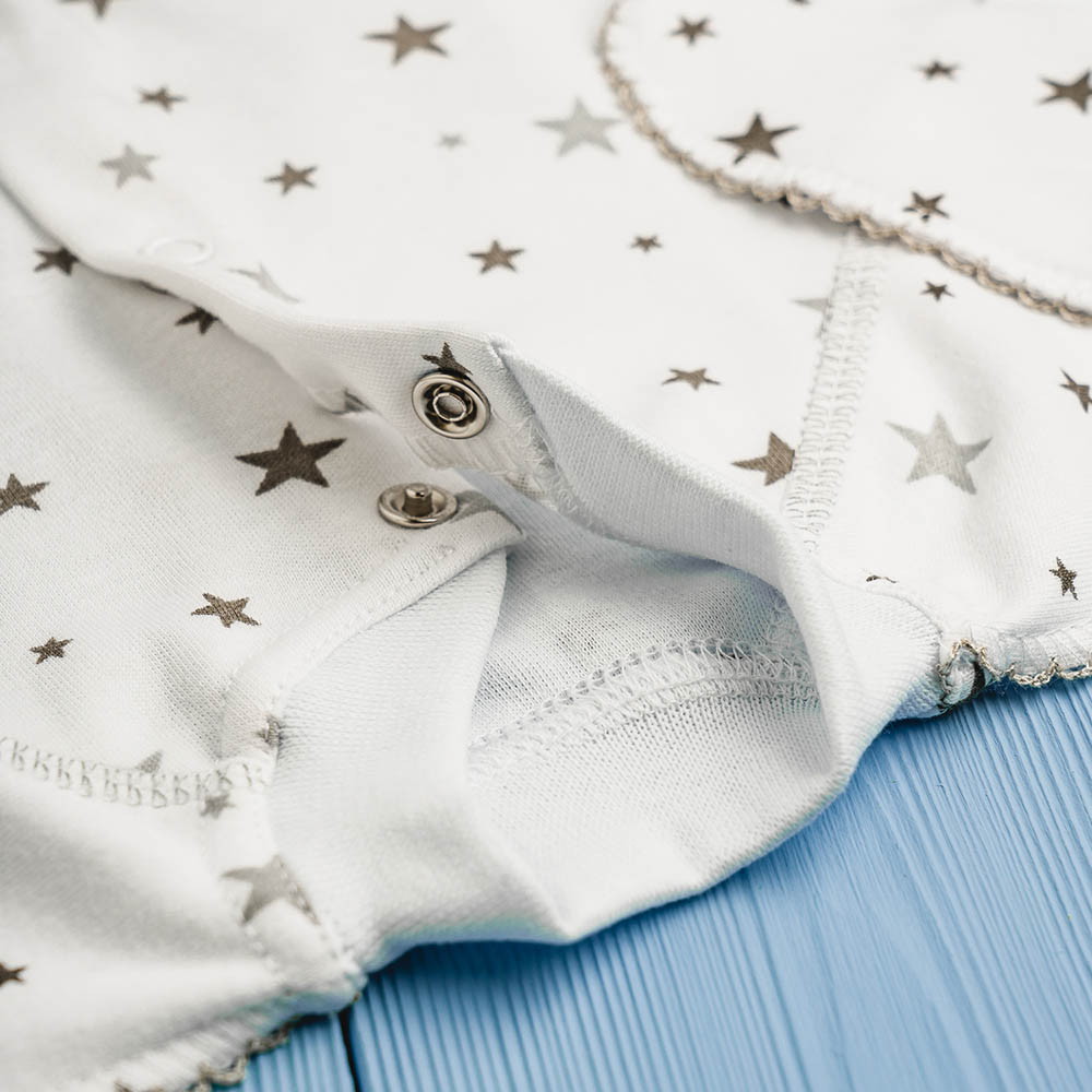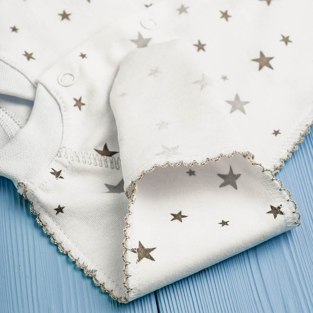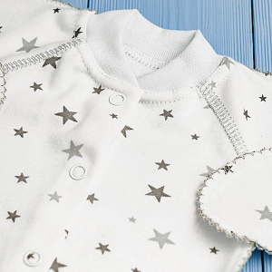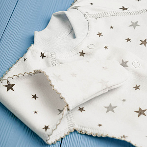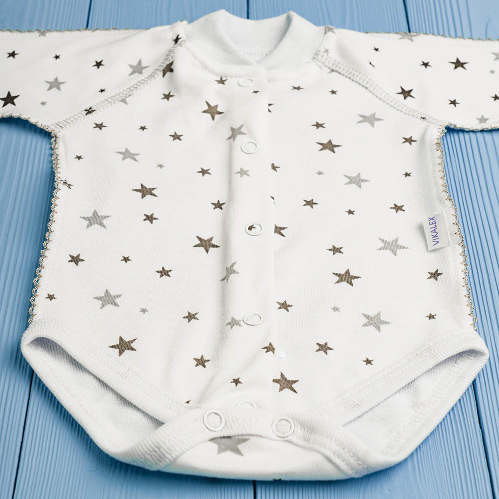 Удобное боди легко надеть на ребёнка благодаря застёжке по всей длине. Модель со швами наружу, которые не будут доставлять малышу неудобств. Проймы для ног отделаны кантом. Изделие из натуральной дышащей ткани.