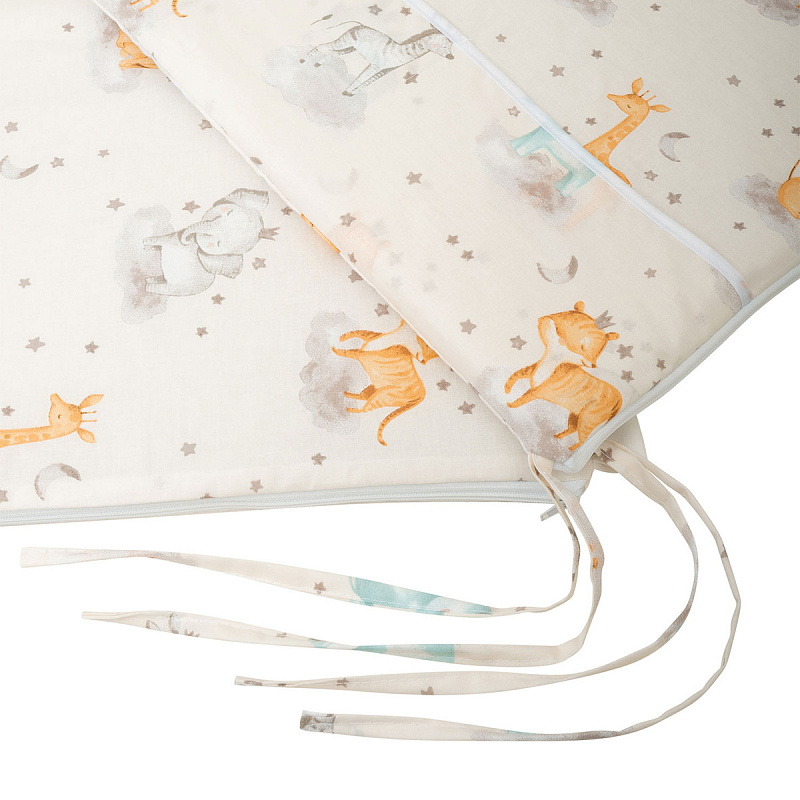 Борт в кроватку Indigo Лесные зверята из 4-х частей, с рюшкой, чехлы съемные, поплин львята