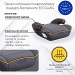 Данный бустер выгодно отличается за счет оптимального размера сиденья. Специальная анатомическая форма сидушки предотвращает онемение в ногах ребенка во время длительных поездок в машине. Удобные мягкие подлокотники обеспечивают максимально комфортное положение рук.