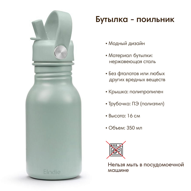 Бутылка - поильник Elodie 350 мл 60258109193NA Pebble GreenНет оценокХарактеристики