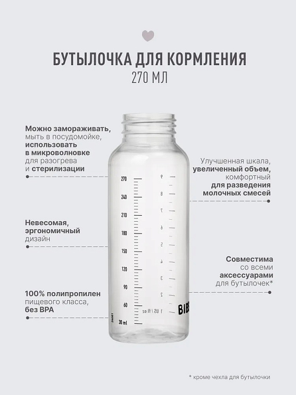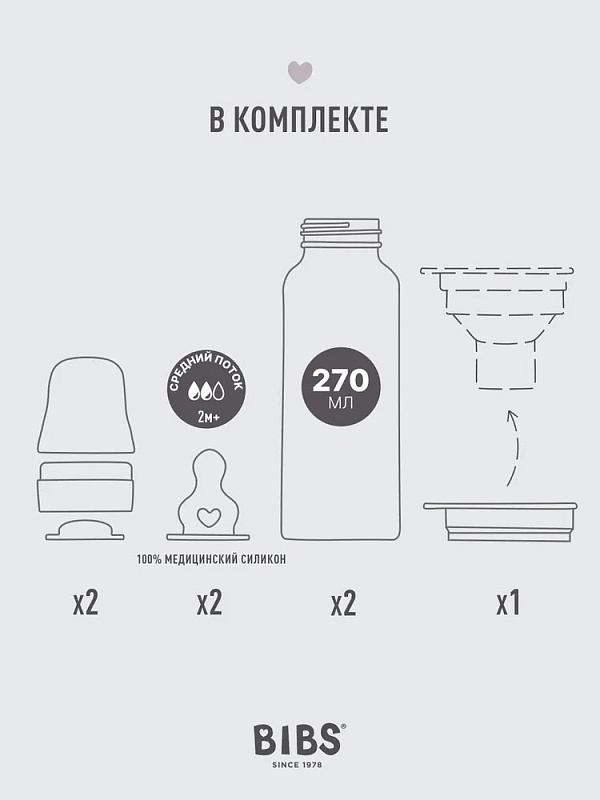 Долгожданная новинка от BIBS в наборе из невесомой версии бутылочки для кормления, воронки, кольца против протекания и латексной соски. Бутылочку из премиального полипропилена очень удобно держать в маленьких ручках благодаря низкому весу. Её эргономичная форма позволит ребёнку чувствовать себя максимально комфортно во время кормления. Теперь стеклянную бутылочку BIBS можно оставить дома, а в дорогу или на прогулку брать невесомую версию бутылочки из полипропилена. Чтобы помочь родителям сэкономить время на подготовке детского питания, форма бутылочки совместима с аппаратами для приготовления молочной смеси. Привлекательная стоимость новинки приятно удивит своей доступностью. Бутылочка на 100% выполнена из пищевых материалов. Не содержит бисфенол А и другие вредные примеси. Продукт соответствует европейским стандартам качества.