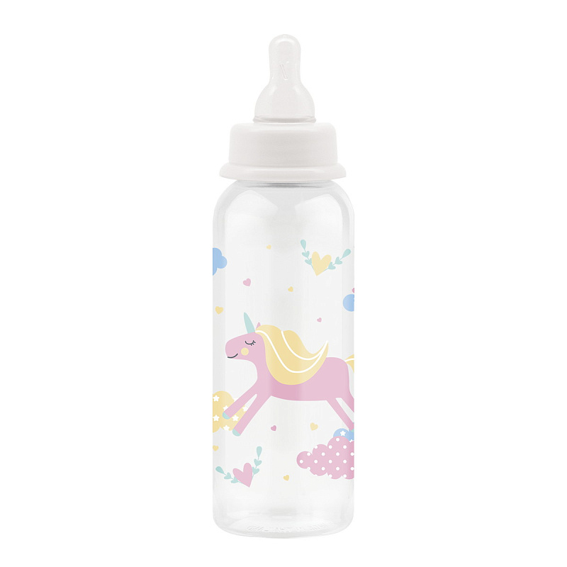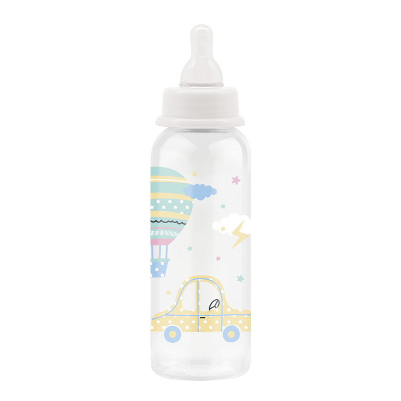 Бутылочка для кормления со стандартным (узким) горлышком оснащена силиконовой молочной соской медленного потока. Выполнена из безопасного материала - полипропилена. Такие бутылочки легкие, не бьются. Силиконовые соски упругие, что способствует развитию жевательного аппарата, не вызывают аллергию. Выпуклая, нестираемая шкала имеет удобный шаг в 30 мл.