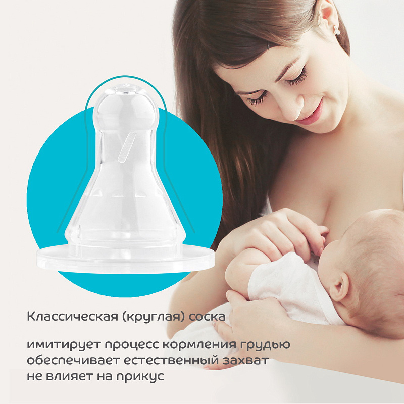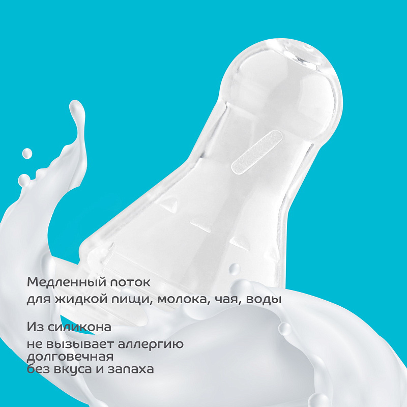 Бутылочка для кормления со стандартным (узким) горлышком оснащена силиконовой молочной соской медленного потока. Выполнена из безопасного материала - полипропилена. Такие бутылочки легкие, не бьются. Силиконовые соски упругие, что способствует развитию жевательного аппарата, не вызывают аллергию. Выпуклая, нестираемая шкала имеет удобный шаг в 30 мл.