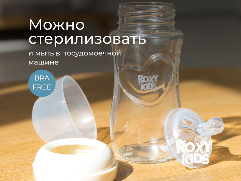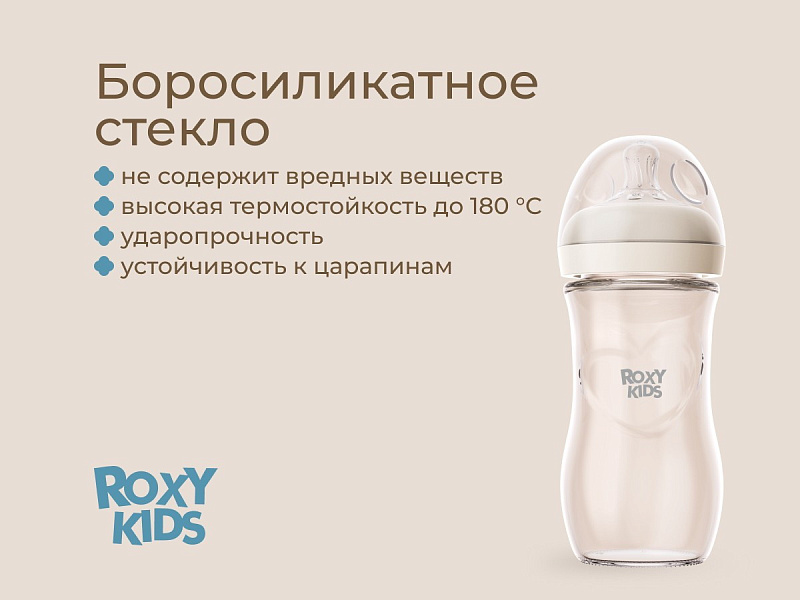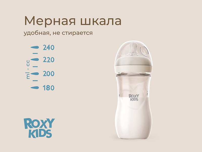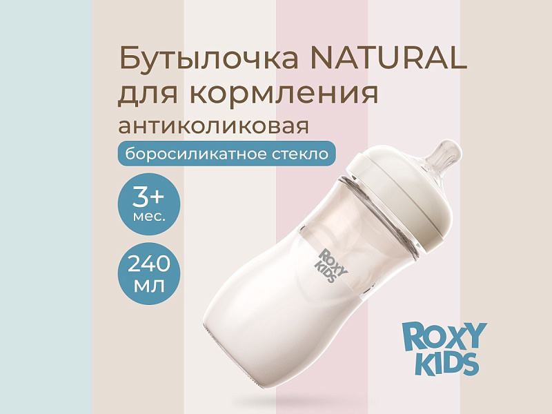 Бутылочка для кормления Roxy-Kids Natural, стекло, 240 мл, средний поток, 3+ RBTL-008-GLA-I слоновая костьНет оценокХарактеристики