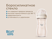 Бутылочка для кормления Roxy-Kids Natural, стекло, 240 мл, средний поток, 3+ RBTL-008-GLA-I слоновая кость