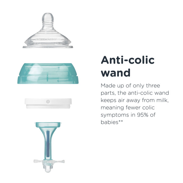Специальная конструкция с воздухоотводящим отверстием позволяет малышу получать молоко без лишнего воздуха и тем самым избежать его скопления в животике. Уникальная форма мягкой силиконовой соски обеспечивает простоту захвата. Термочувствительная трубка определяет температуру питания (синий цвет – кормление безопасно, розовый – температура выше 37 º С).