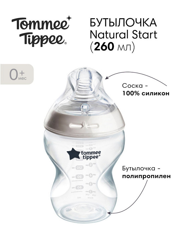 Бутылочка для кормления Tommee Tippee Natural Start, 260 мл., 0+ TT0480 бежевыйНет оценокХарактеристики