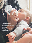 Соска оснащена инновационным антиколиковым клапаном, который предотвращает симптомы колик, обеспечивая поступление в организм вашего малыша большее количества молока и меньшее количества воздуха. Для дополнительного спокойствия детская бутылочка Natural Start полностью герметична в закрытом виде.