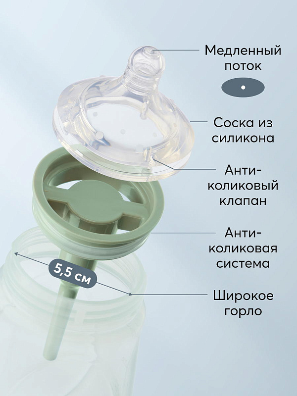 Бутылочка имеет съемные ручки с антискользящим покрытием.