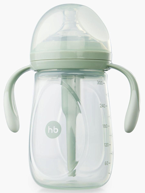 Бутылочка с ручками Happy Baby с силиконовой соской 300 мл olive