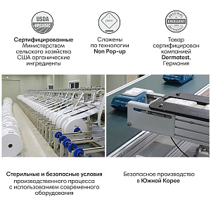 - Салфетки сложены по технологии Non Pop-up, что делает их экономичными и позволяет достать только одну салфетку за раз;