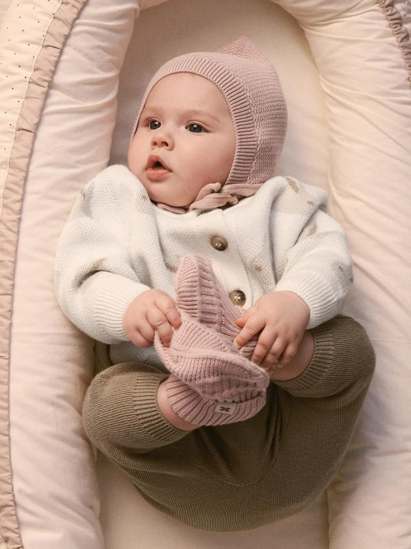 Вязаная шапочка из хлопка — это не только красивый аксессуар, но и практичный предмет детского гардероба. Она защитит чувствительные детские ушки во время прогулки. Малышу будет комфортно и удобно благодаря идеальной посадке и надежному прилеганию. К тому же оригинальная форма шапочки не оставит никого равнодушным! Плоские швы не натирают и не оставляют следов на чувствительной коже.