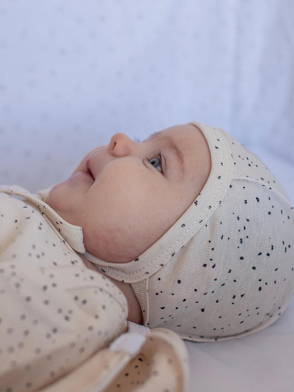 Чепчики Mjölk [мьёльк] из нежного трикотажа идеально подойдут для новорожденных деток и малышей. Изделие выполнено швами наружу, модель садится по голове ребёнка, хорошо повторяя её форму и надёжно закрывая ушки, а завязочки мягко удерживают чепчик.