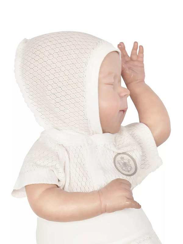 Нежнейший чепчик подарит малышу комфорт и удобство с первых дней жизни. Чепчик изготовлен из натурального хлопка, приятного к телу и абсолютно безопасного для грудного ребенка. Чепчик выполнен швами наружу, что предотвращает натирание головки. Мягкий чепчик защищает родничок, сохраняет тепло и создаёт комфорт для сна и активности малыша. Удобные завязочки позволяют чепчику регулировать посадку по голове и не сползать на глаза. Чепчик оберегает голову и ушки младенца от переохлаждения и сквозняков.