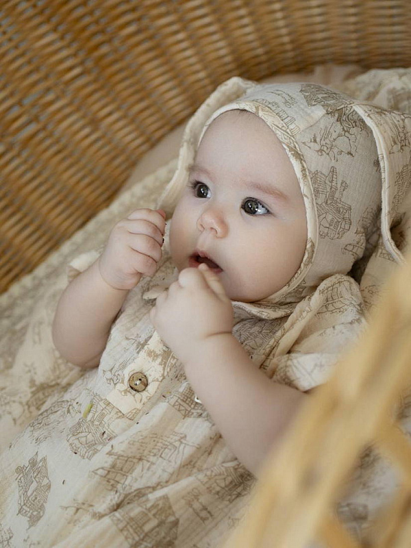 Нежнейший муслиновый чепчик оригинального кроя подарит малышу комфорт и удобство с первых дней жизни. Чепчик представлен в виде "Зайчика" с длинными ушками. Чепчик защищает родничок, сохраняет тепло и создаёт комфорт для сна и активности малыша. Нежные завязочки позволяют чепчику регулировать посадку по голове и не сползать на глаза. Изделие изготовлено из натурального хлопка, приятного к телу и абсолютно безопасного для грудного ребенка, только что появившегося на свет. Чепчик оберегает голову и ушки младенца от переохлаждения и сквозняков. Такой головной убор очень мило смотрится на головке малыша и обязательно понравится ему самому.