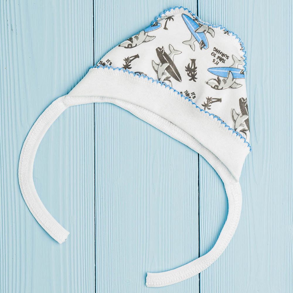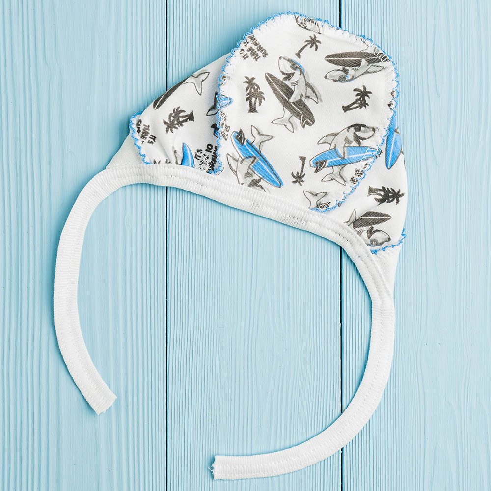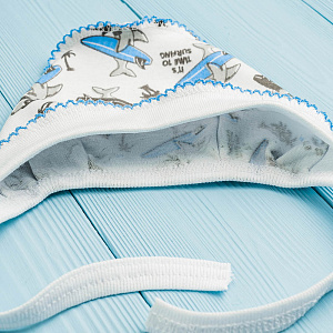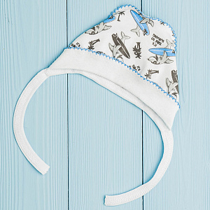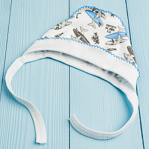 Чепчик выполнен из натуральной дышащей ткани и украшен рисунками. Модель с удобными завязочками, которые не будут натирать нежную кожу малыша. Швы наружу не придают дискомфорта. Ткань хорошо пропускает воздух благодаря натуральному составу.