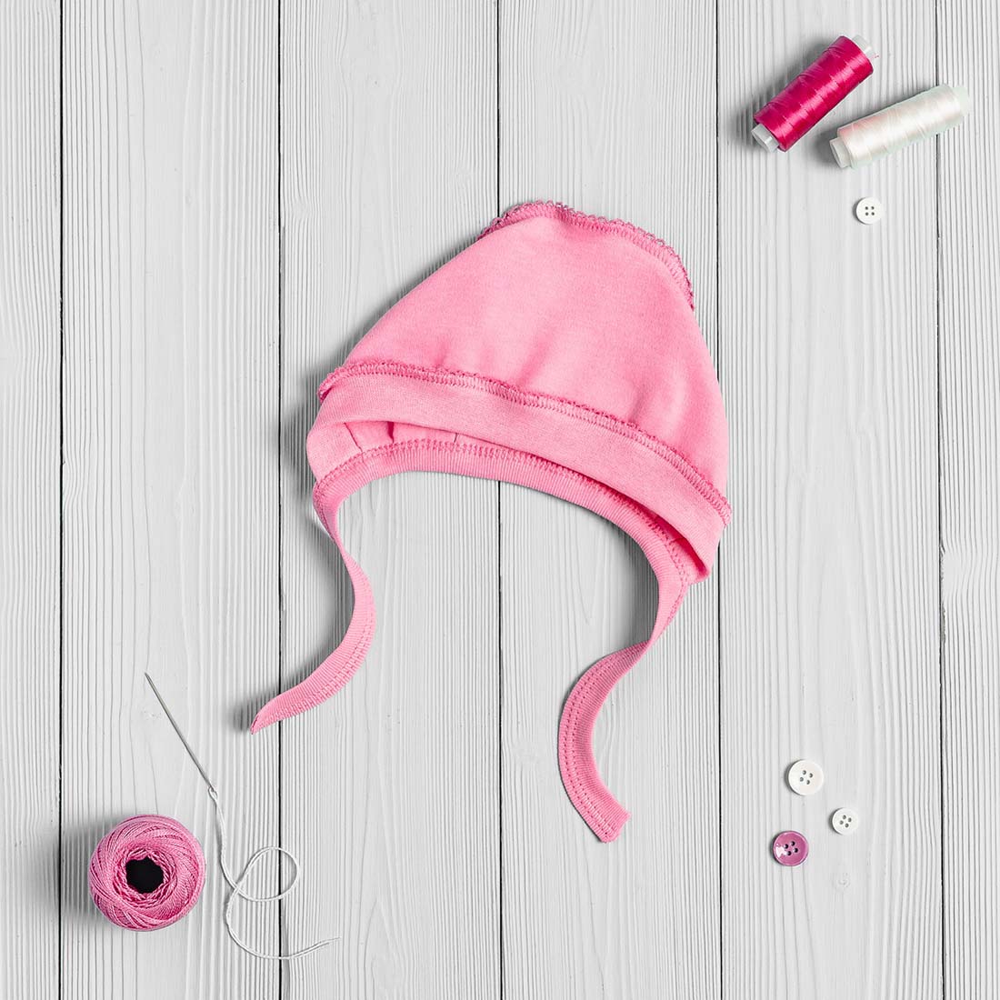 Чепчик выполнен из натуральной дышащей ткани. Модель с удобными завязочками, которые не будут натирать нежную кожу малыша. Швы наружу не придают дискомфорта. Ткань хорошо пропускает воздух благодаря натуральному составу.