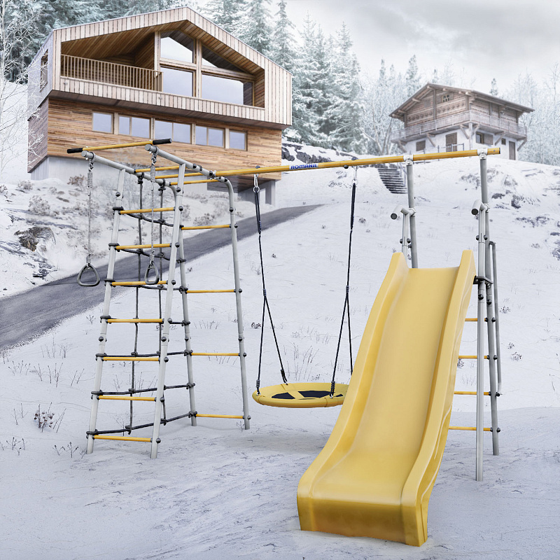 Дачный комплекс Romana Богатырь MAX + качели-гнездо 103.07.07 серый/жёлтый