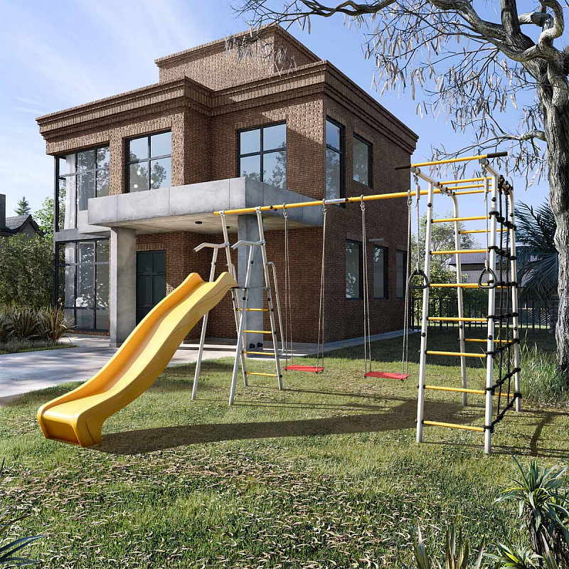 Дачный комплекс Romana Богатырь Плюс 2 MAX + фанерные качели 103.12.07 серый/желтый