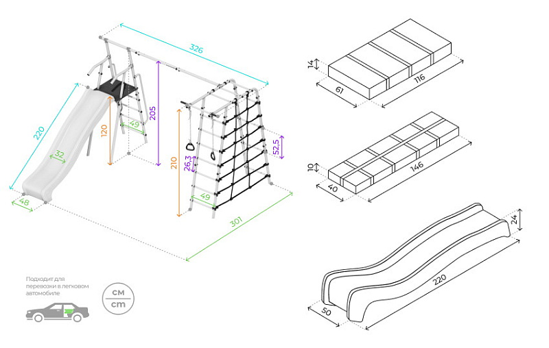 Дачный комплекс Romana Богатырь Плюс 2 MAX + фанерные качели 103.12.07 серый/желтыйНет оценокХарактеристики