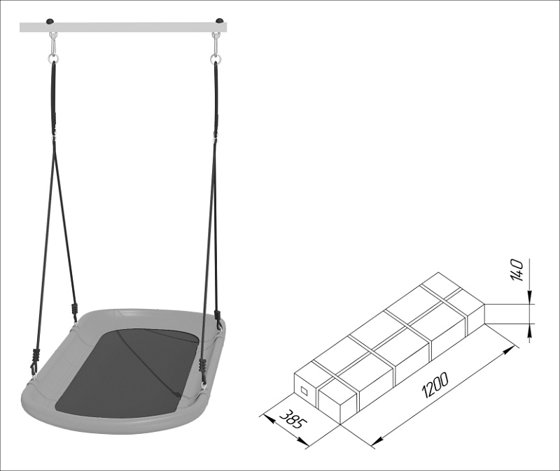В наборегорка, кольца, веревочный лаз, гимнастическая лестница, рукоход, неподвижный турник, качели лодка