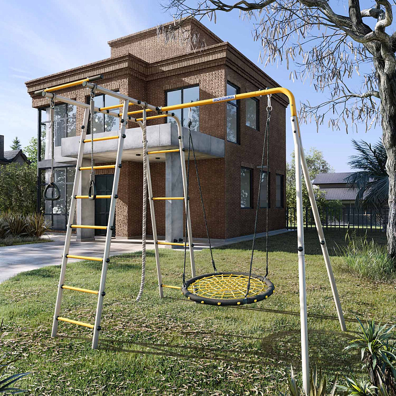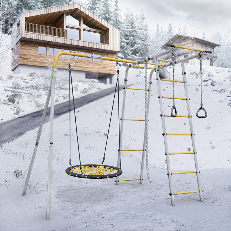 Дачный комплекс Romana Лесная поляна 3 + качели-гнездо 80 см R 103.26.05 серый/жёлтый