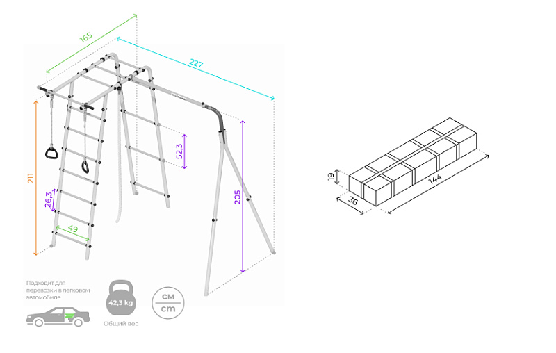 В набореканат, кольца, гимнастическая лестница, неподвижный турник, качели гнездо сетка 80 см