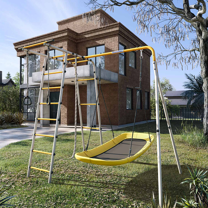 В набореканат, кольца, гимнастическая лестница, неподвижный турник, качели лодка