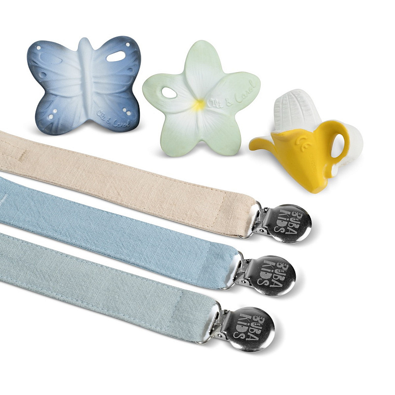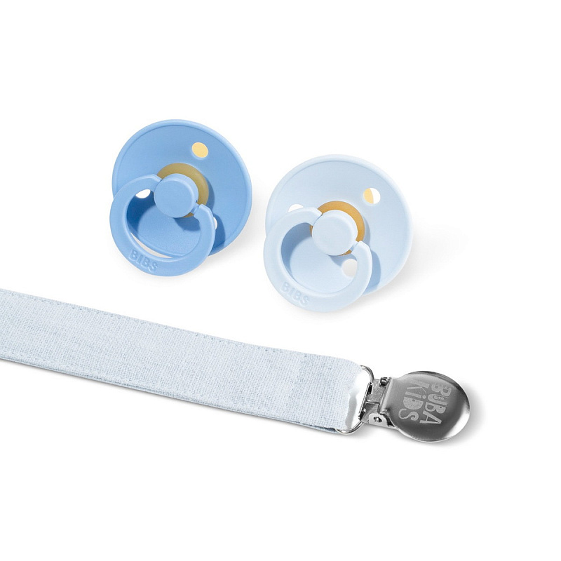 Держатель подходит для всех видов пустышек – как с ручкой (например, BIBS Colour/Boheme/DeLux), так и без ручки (BIBS Couture/Supreme/Infinity). В комплекте c держателем есть силиконовое колечко, которое используется для крепления пустышки без ручки. Также держатели BUBA KIDS подходят для всех прорезывателей BIBS Baby Bitie, Mushie и прорезывателей Oli&Carol с отверстием для крепления.