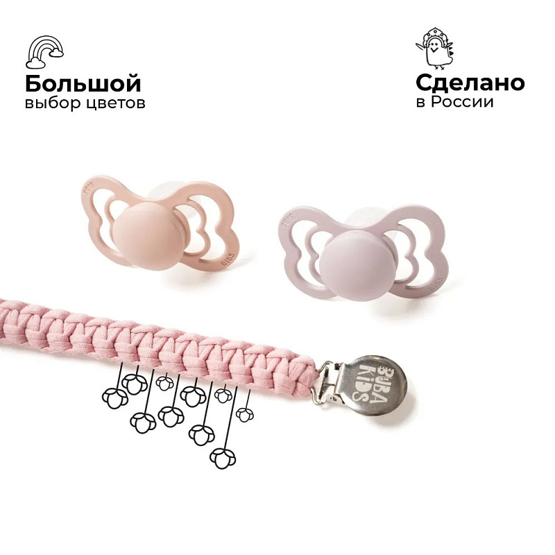 Держатели BUBA KIDS подходят абсолютно для всех видов пустышек – как с ручкой (BIBS Colour/Boheme/De Lux), так и без ручки (BIBS Couture/Supreme/Infinity). В комплекте c держателем есть силиконовое колечко, которое используется для крепления пустышки без ручки. Также держатели BUBA KIDS подходят для всех прорезывателей BIBS Baby Bitie, Mushie и прорезывателей Oli&Carol с отверстием для крепления.