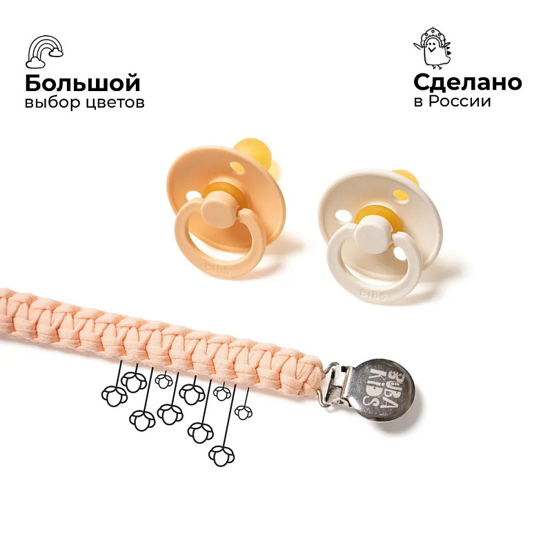 Держатели BUBA KIDS подходят абсолютно для всех видов пустышек – как с ручкой (BIBS Colour/Boheme/De Lux), так и без ручки (BIBS Couture/Supreme/Infinity). В комплекте c держателем есть силиконовое колечко, которое используется для крепления пустышки без ручки. Также держатели BUBA KIDS подходят для всех прорезывателей BIBS Baby Bitie, Mushie и прорезывателей Oli&Carol с отверстием для крепления.