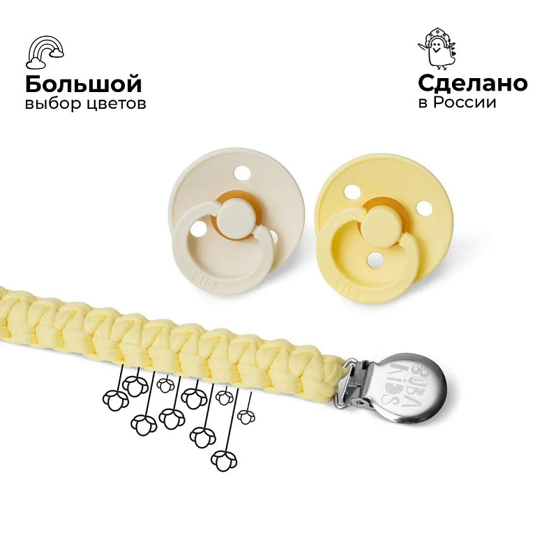 Держатель очень прост в использовании: прикрепите клипсу к одежде малыша, и пустышка больше не потеряется и не упадет на пол. Палитра цветов почти безгранична.