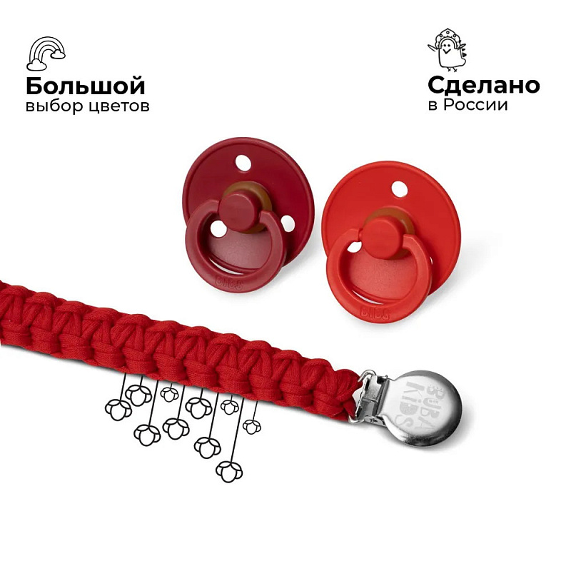 Держатели BUBA KIDS подходят абсолютно для всех видов пустышек – как с ручкой (BIBS Colour/Boheme/De Lux), так и без ручки (BIBS Couture/Supreme/Infinity). В комплекте c держателем есть силиконовое колечко, которое используется для крепления пустышки без ручки. Также держатели BUBA KIDS подходят для всех прорезывателей BIBS Baby Bitie, Mushie и прорезывателей Oli&Carol с отверстием для крепления.
