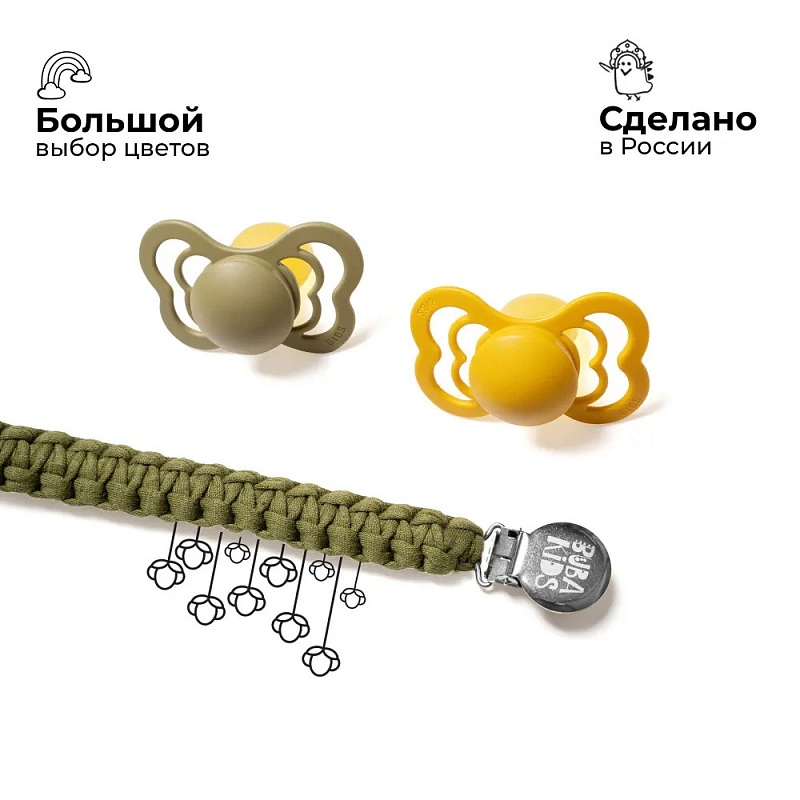 Держатель очень прост в использовании: прикрепите клипсу к одежде малыша, и пустышка больше не потеряется и не упадет на пол. Палитра цветов почти безгранична.