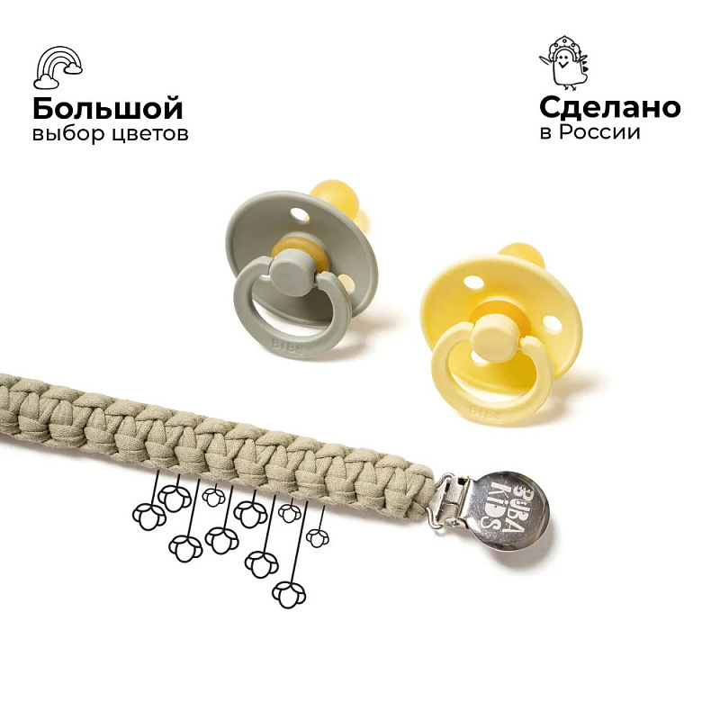 Держатель очень прост в использовании: прикрепите клипсу к одежде малыша, и пустышка больше не потеряется и не упадет на пол. Палитра цветов почти безгранична.