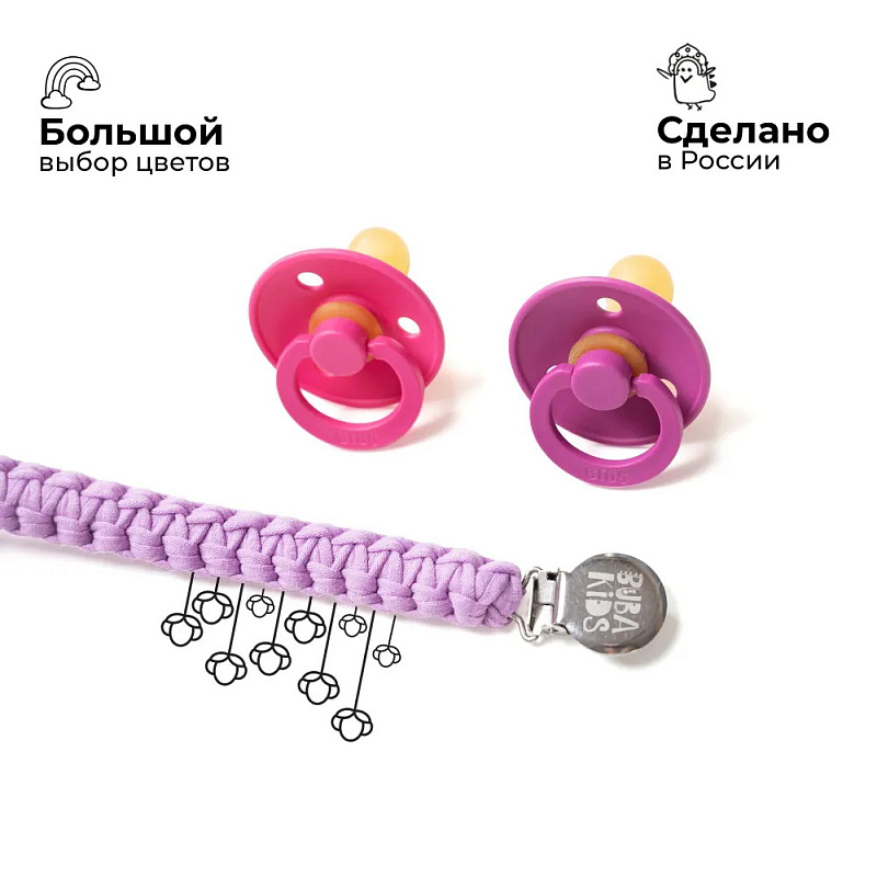 Держатели BUBA KIDS подходят абсолютно для всех видов пустышек – как с ручкой (BIBS Colour/Boheme/De Lux), так и без ручки (BIBS Couture/Supreme/Infinity). В комплекте c держателем есть силиконовое колечко, которое используется для крепления пустышки без ручки. Также держатели BUBA KIDS подходят для всех прорезывателей BIBS Baby Bitie, Mushie и прорезывателей Oli&Carol с отверстием для крепления.
