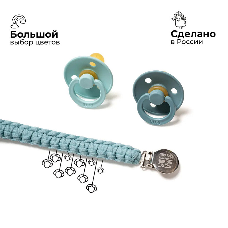 Держатель очень прост в использовании: прикрепите клипсу к одежде малыша, и пустышка больше не потеряется и не упадет на пол. Палитра цветов почти безгранична.