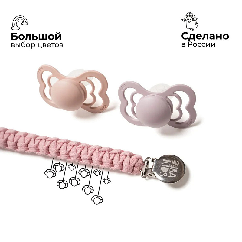 Держатели BUBA KIDS подходят абсолютно для всех видов пустышек – как с ручкой (BIBS Colour/Boheme/De Lux), так и без ручки (BIBS Couture/Supreme/Infinity). В комплекте c держателем есть силиконовое колечко, которое используется для крепления пустышки без ручки. Также держатели BUBA KIDS подходят для всех прорезывателей BIBS Baby Bitie, Mushie и прорезывателей Oli&Carol с отверстием для крепления.