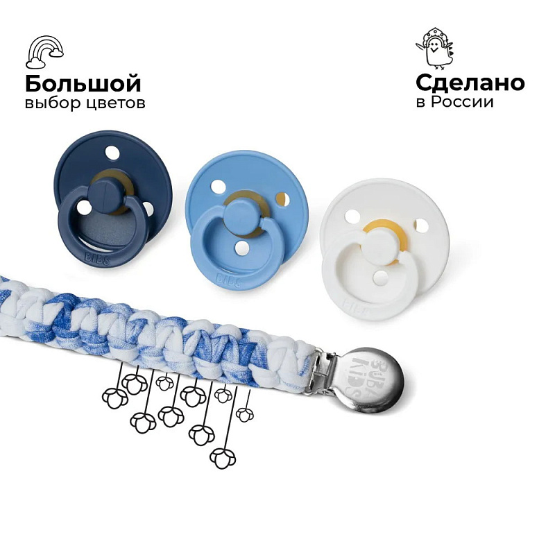 Держатель очень прост в использовании: прикрепите клипсу к одежде малыша, и пустышка больше не потеряется и не упадет на пол. Палитра цветов почти безгранична.