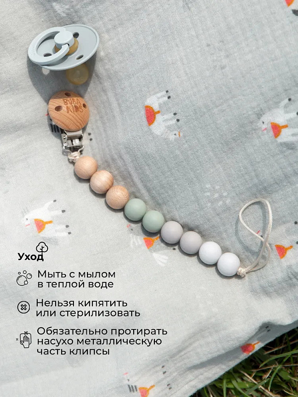 Бусины выполнены из безопасных материалов: 100% пищевой силикон и натуральное дерево (бук).