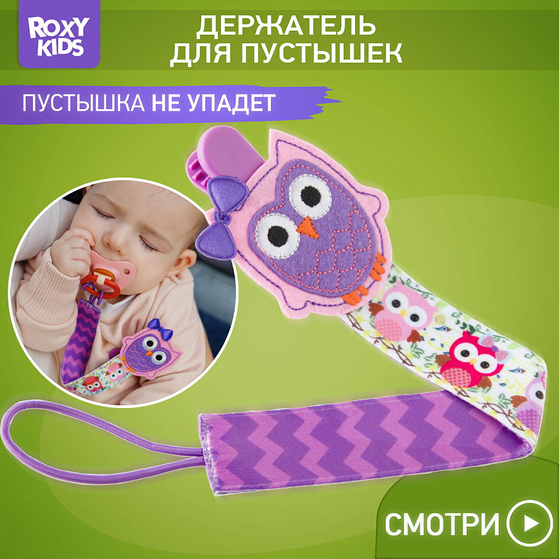 Держатель для пустышки от ROXY-KIDS избавит ребенка от риска потерять или испачкать пустышку, соску, ниблер или грызунок. Один конец держателя прикрепляется к тому предмету, который вы хотите сохранить, а второй при помощи специальной клипсы пристегивается к одежде ребенка. Держатели выполнены из двух слоев полиэстера, прочно сшитых вместе, поэтому они не износятся и не порвутся. Яркие цвета ткани привлекут внимание ребенка и будут отлично смотреться на фоне детской одежды. С держателями пустышка останется чистой, будет всегда поблизости к малышу и у вас на виду. В ассортименте ROXY-KIDS держатели представлены в нескольких цветах и дизайнах.