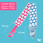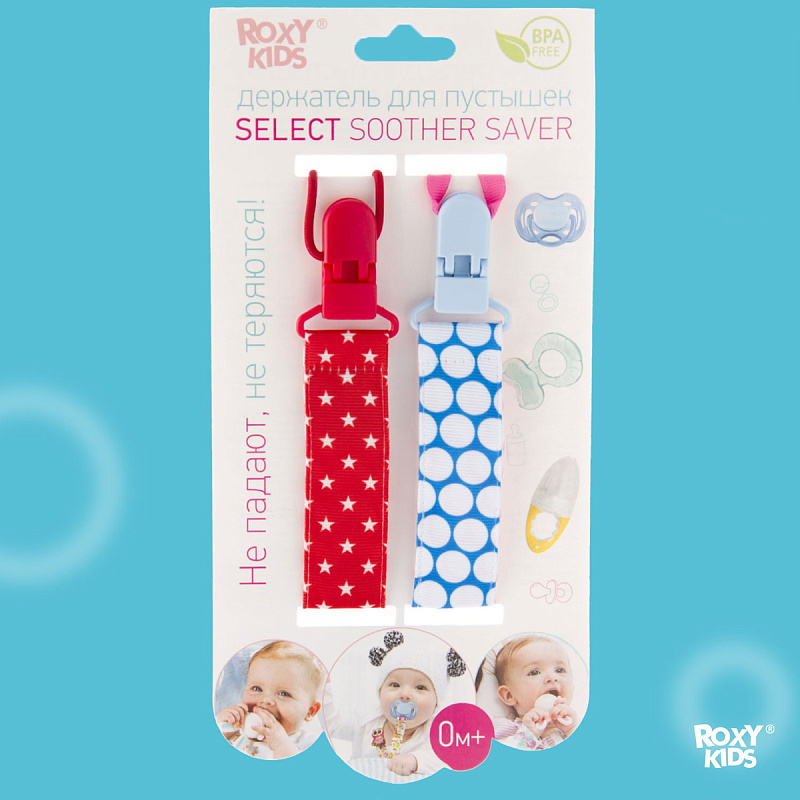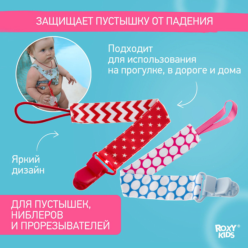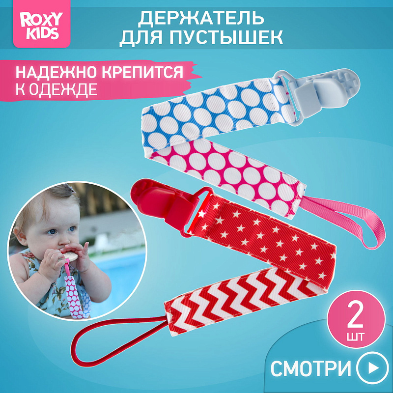 Держатель для пустышки от ROXY-KIDS избавит ребенка от риска потерять или испачкать пустышку, соску, ниблер или грызунок. Один конец держателя прикрепляется к тому предмету, который вы хотите сохранить, а второй при помощи специальной клипсы пристегивается к одежде ребенка. Держатели выполнены из двух слоев полиэстера, прочно сшитых вместе, поэтому они не износятся и не порвутся. Яркие цвета ткани привлекут внимание ребенка и будут отлично смотреться на фоне детской одежды. С держателями пустышка останется чистой, будет всегда поблизости к малышу и у вас на виду. В ассортименте ROXY-KIDS держатели представлены в нескольких цветах и дизайнах.