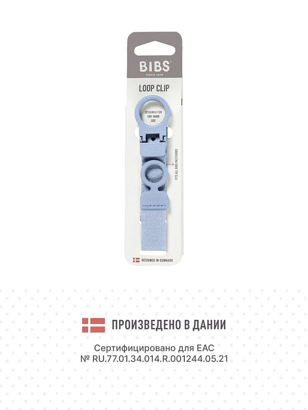 - Держатель очень прост в использовании: прикрепите клипсу к одежде малыша, и пустышка больше не потеряется и не упадет на пол. К нему можно подобрать пустышку BIBS с аналогичным принтом.