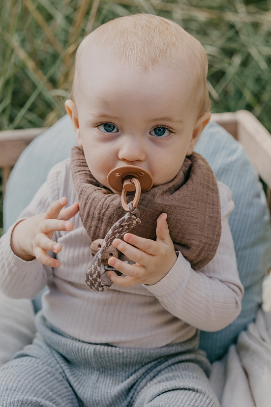 Держатель BIBS – это стильный и полезный аксессуар, с помощью которого пустышка надёжно и безопасно крепится к одежде малыша и всегда под рукой. Дизайн и палитра соответствуют всем пустышкам BIBS.