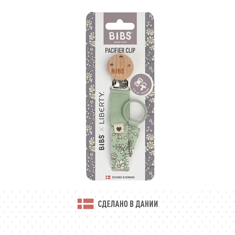 Держатель BIBS LIBERTY из органического хлопка очень прост в использовании: прикрепите клипсу к одежде малыша, и пустышка больше не потеряется и не упадет на пол. К нему можно подобрать пустышку BIBS с аналогичным принтом. Длина соответствует стандартам безопасности.