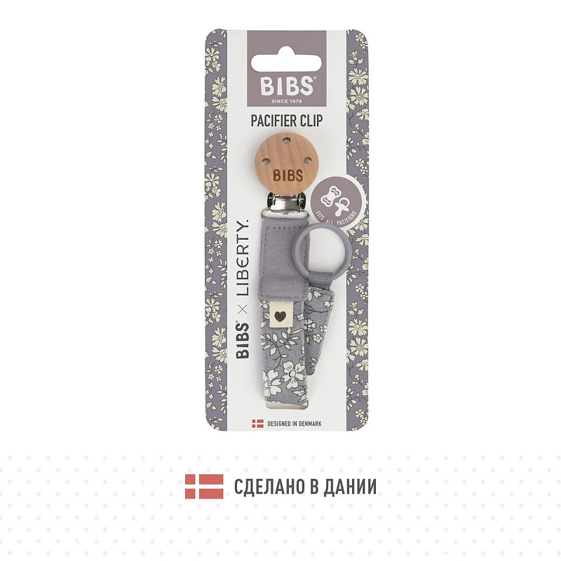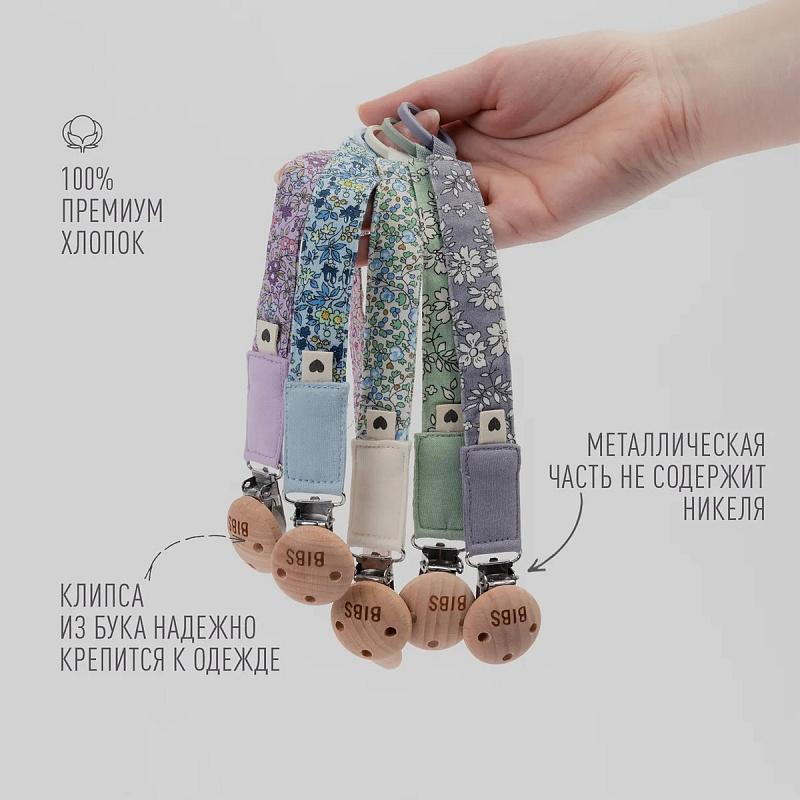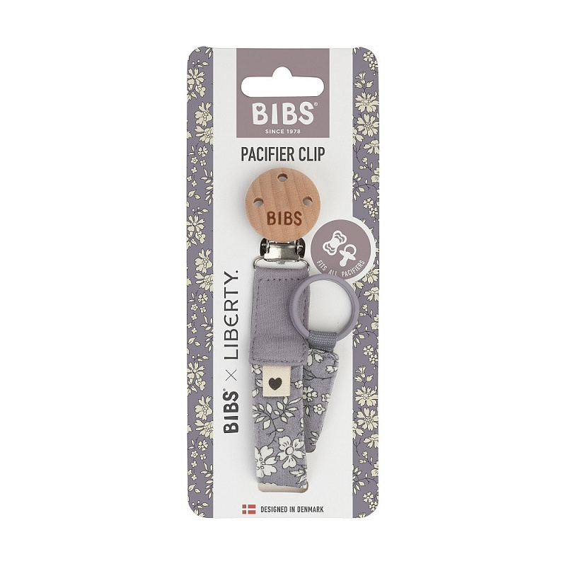 Держатель BIBS LIBERTY из органического хлопка очень прост в использовании: прикрепите клипсу к одежде малыша, и пустышка больше не потеряется и не упадет на пол. К нему можно подобрать пустышку BIBS с аналогичным принтом. Длина соответствует стандартам безопасности.